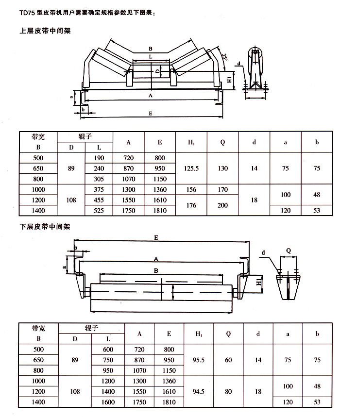 (1)Ⅰ型系列,適用于TD75型皮帶機(jī)