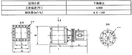 用途 該閥又名葉輪給料機(jī)、回轉(zhuǎn)下料器等,普遍適用于建材、冶金、化工、電力等部門作為各類除塵設(shè)備的卸料裝置及各種磨機(jī)、烘干機(jī)、料倉(cāng)等設(shè)備的給卸料裝置。 結(jié)構(gòu)特點(diǎn) 該閥采用鋼板焊接結(jié)構(gòu)、葉片耐磨性好、葉片與傳動(dòng)軸鋼性連接、結(jié)構(gòu)緊湊、工作可靠、輕便節(jié)能。 工作原理 該閥由閥體、傳動(dòng)軸、葉片和減速器等組成,減速電機(jī)帶動(dòng)軸和葉輪旋轉(zhuǎn),完成給卸料。 型號(hào)編制說(shuō)明