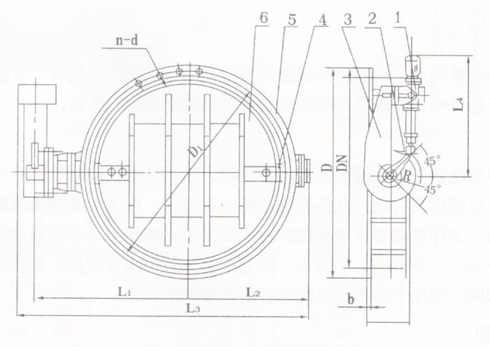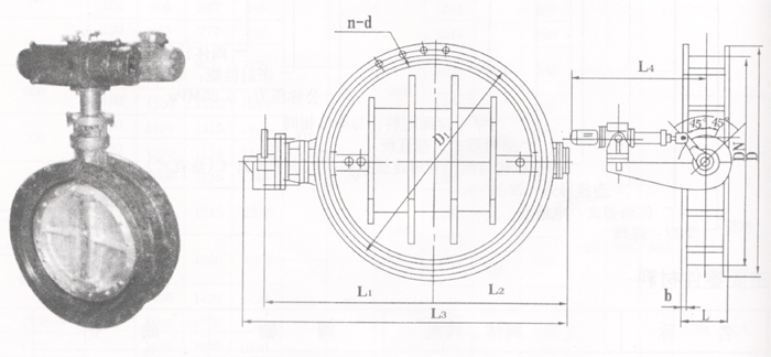 電液動蝶閥以電液推桿作動力源,通過雙向齒輪泵輪出壓力油,經(jīng)油路集成塊的控制送至油缸,實現(xiàn)活塞桿往復(fù)運動,同時通過曲柄轉(zhuǎn)動閥軸、閥板作90°范圍旋轉(zhuǎn),達到調(diào)節(jié)流量的目的。